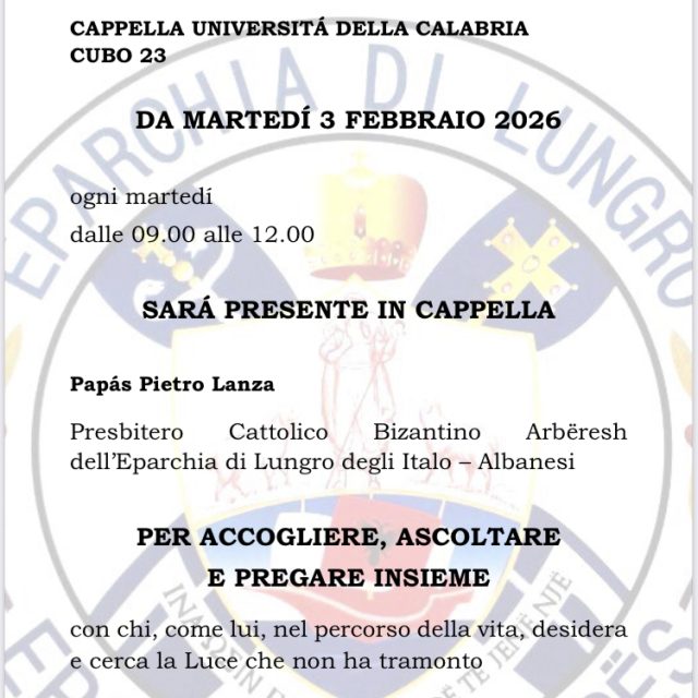 Search IN EVIDENZA Archivio ANNO GIUBILARE DI SAN FRANCESCO D’ASSISI – Reliquie in Eparchia dal 26 al 28 febbraio 2026 8 febbraio 2026 Giornata Diocesana della Vita Consacrata Pastorale universitaria all’Unical dal 3 febbraio 2026, ogni martedì dalle 9 alle 12 MESSAGGI E OMELIE DEL VESCOVO Archivio Vescovo Donato, circolare di febbraio 2026 Circolare di gennaio 2026 del Vescovo Donato Circolare del mese di novembre 2025 Vescovo Donato Circolare di Febbraio 2025 Catechesi Mistagogica LITURGIA DELLA DOMENICA Archivio E Diela 8 febbraio 2026 Febbraio 08 2026 Febbraio 08 2026… NOTIZIE DALLA DIOCESI Archivio Presenza missionaria all’Unical ogni martedì Dal prossimo martedì 3 febbraio 2026, la nostra Eparchia ritorna con una presenza missionaria settimanale… Imerologhion 2026 L’Eparchia di Lungro ha già messo in circolazione l’Imerologhion 2026, l’Ordo bizantino che regola le… NOTIZIE DALLE PARROCCHIE Archivio “Java e prigatorvet” – Shën Kostandin Acquaformosa, Settimana dei defunti LAJME ARBRISHT Archivio Parkalesmi arbrisht O Mbret qiellor, Ngushëllimtar, Shpirti i së vërtetës, që ndodhe kudò e mblon të gjitha,… Gjuha jone IMG_6522… Tweets by Pontifex_it LINK www.orientchurch.va www.christianunity.va www.ecumenismo.chiesacattolica.it www.centroecumenismo.it www.patriarchate.org www.abbaziagreca.it www.eparchiapiana.org www.collegiogreco.blogspot.com www.saenotizie.it www.oikoumene.org/en www.fondazionegiovannipaolo2.org MODELLI CANCELLERIA Archivio CEI: Decreto generale sul matrimonio canonico, 5 novembre 1990 Moduli matrimoniali Eparchia di Lungro Il tuo browser non supporta i frame MEDIA
