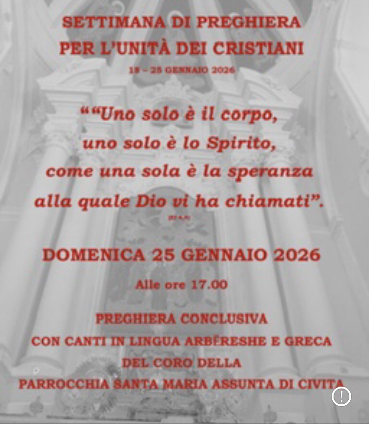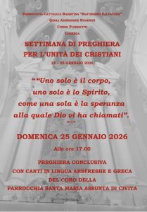 Domenica 25 gennaio 2026 Concerto del coro parrocchiale di Civita a Cosenza per la chiusura della Settimana di Preghiera per l’Unità dei Cristiani