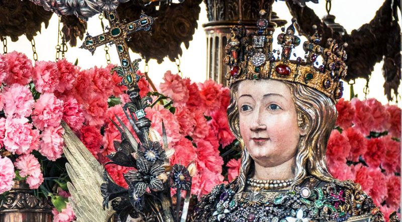 Nella Sicilia del III secolo, la storia di Agata si dipana fra Catania e Palermo, le due città che si contendono i natali della martire. Leggendo la sua “Passio”, pare si possa desumere che la fanciulla sia nata nel 235 alle falde dell’Etna, da una nobile e ricca famiglia. È ancora adolescente quando manifesta la volontà di consacrarsi a Dio, e con il rito della velatio riceve dal suo vescovo il flammeum, il velo rosso portato allora dalle vergini consacrate. La tradizione la descrive anche diaconessa, dedita al servizio per la comunità cristiana. Nel 250 l’editto dell’imperatore Decio contro i cristiani scatena una dura persecuzione e a Catania ad applicarlo duramente è lo spietato proconsole Quinziano, che s’invaghisce di Agata.