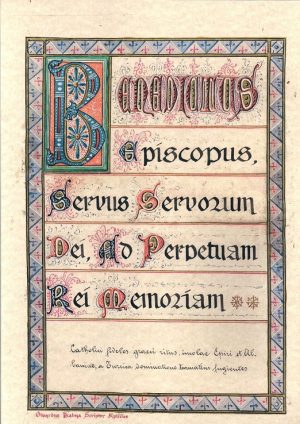 Ish dita 13 fjavar 1919, kur i nderuari Papë Benedhiti XV, me Kushtetutën Apostollike ‘Catholici Fideles’ krijonij Eparkinë e Ungrës të Arbëreshëvet të Talljes Kontinentale për “bestarët katolikë të ritit grek, çë rrojin në Epir e në Arbërì,të pështuar valë-valë nga zotërimi i Turqvet, …të mbledhur me bularì zëmergjerë…ndër dherat e Kallàbrjes e të Siçìlljes, ture mbajtur, si ish për me bënë, zakonet e traditat e popullit grek, sa e më shumë ritet e Qishës së tyre, bashkë me gjithë lexhat e zakonet çë ata kishin trashguar ka Étërit e tyre dhe me më të madhin kujdes e mall kishin ruajtur për shumë shekul. Kjo mënyrë së rruari të të mërguarvet arbëreshë qe me pjot gëzim e aprovuar dhe e lejuar ka Papa, ashtu çë ata, mbatanë qiellit të tyre, sikur të kishin ri-gjetur Atdhenë e tyre në territor italian […]”. Selia e Shënjtë përgjegjej kështu, me mirëdashje